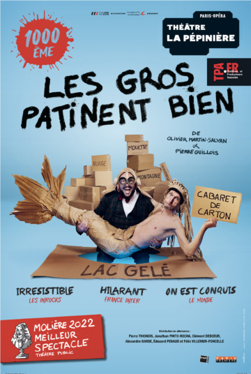 Spectacle aussi improbable qu’hilarant, Les gros patinent bien embarque le public dans un voyage totalement déjanté fait de cartons, d’imagination et de gags en cascade. Une heure trente de fou rire au Théâtre La Pépinière avec Pierre Guillois et Olivier Martin-Salvan, récompensé par le Molière du meilleur spectacle de théâtre public 2022.