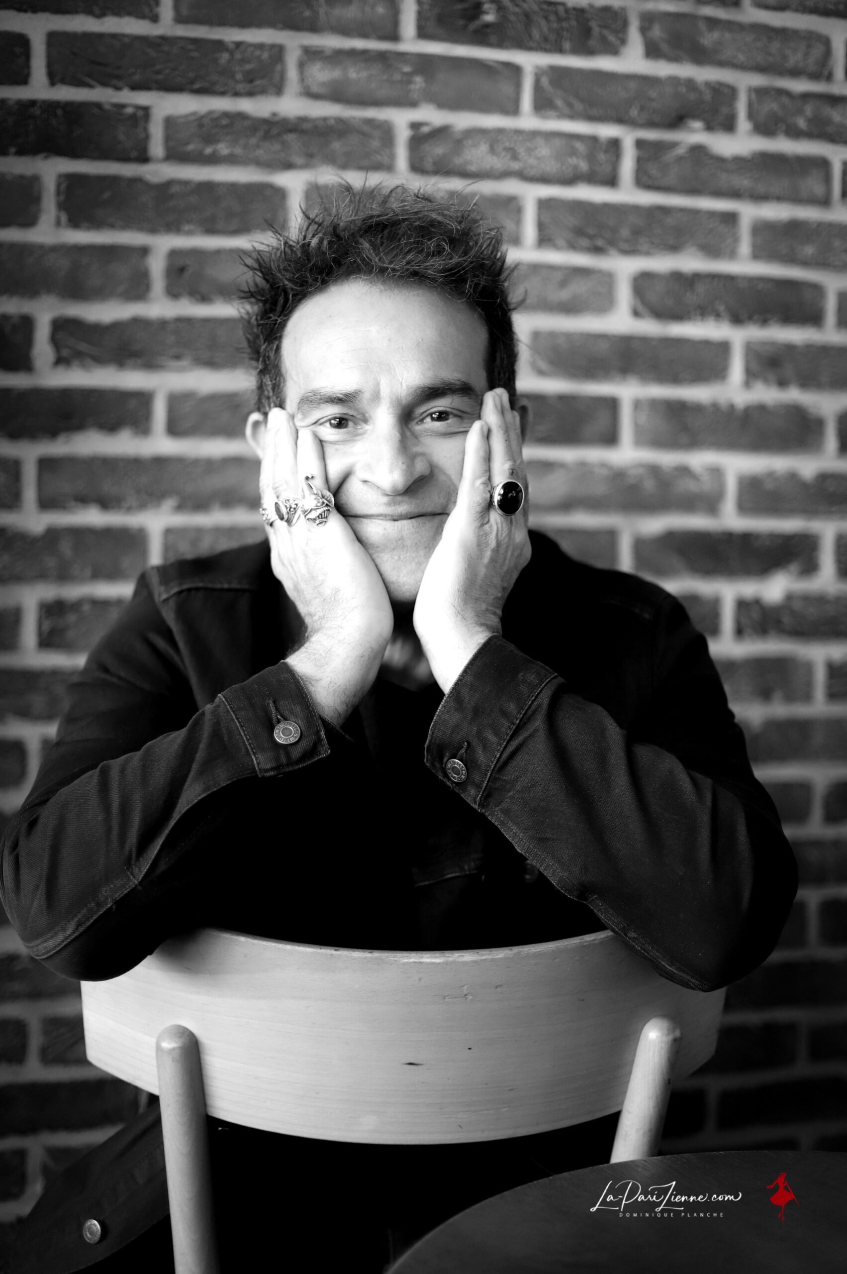 Rendez-vous Chez Coco. Terrasse ou intérieur ? On hésite à peine. Ce sera dedans : lumière douce, murs en briques rouges — un décor presque trop parfait pour un artiste qui parle de failles et de liberté.
