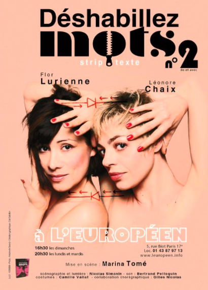 En 2012, j’étais tombée sur un spectacle intitulé : « déshabilllez-mots » mise en scène par Marina Tomé, joué et écrit par Flor Lurienne et Léonore Chaix.